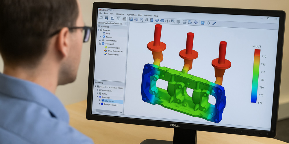 We utilise the latest simulation tools that enables foundries to digitally design, test, and refine their components before they reach the production stage. At Bridge Aluminium, we incorporate simulation software into our engineering workflows to enhance quality, consistency, and efficiency across all casting methods. By using simulation technology, at the earliest stages of development, we are able to improve outcomes and reduce the risk of costly design flaws or process instability. One of the most significant advantages of simulation software is the ability to model the entire casting process in a virtual environment. This includes mould filling, solidification, thermal gradients, and the prediction of potential defects such as shrinkage, porosity, or misruns. Through this approach, our engineers can analyse how molten aluminium behaves within a mould, which allows us to make informed decisions about gating, riser placement, and overall part geometry. This reduces reliance on physical trials and helps us deliver superior results on the first production run.